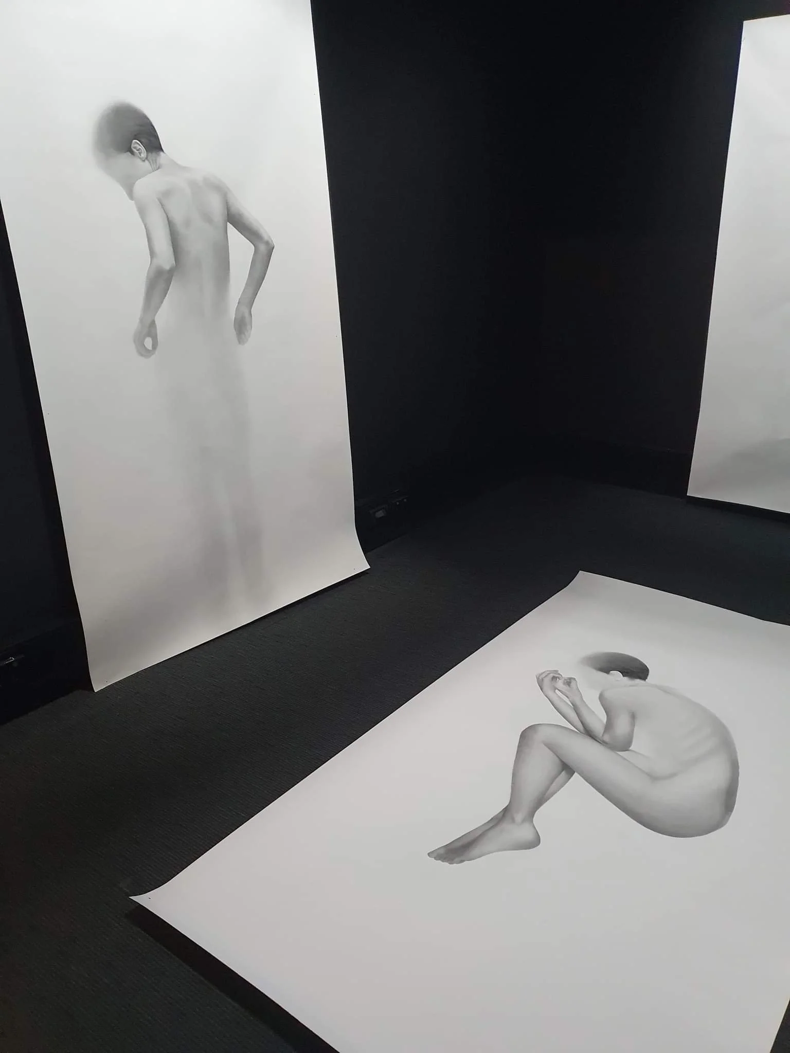 (Dis)comfort, 2022, graphite on paper, 210 x 110cm